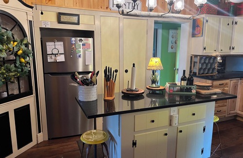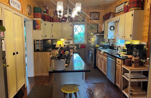 Are you seeking simple style, clean lines, and minimalistic décor? Then book elsewhere! If Adirondack backwoods charm and mid-century country chic had a baby, this would be it. Renovated bathrooms and kitchen add modern conveniences and luxury touches, while vintage treasures, collectibles, statement pieces, and flea-market finds evoke a frontier atmosphere.
