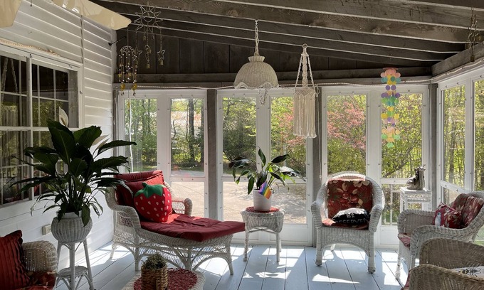- Dog-friendly log cabin on 44 acres with woodstove & porch, near lakes/skiing