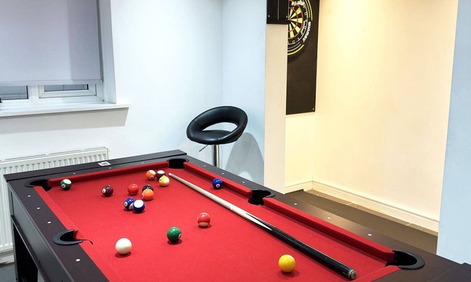 This three-storey period property has a lovely sense of history, which you can see all around you in the form of exposed brickwork, built-in cupboards and ornate fireplaces. The ground floor consists of an almost completely open-plan run, from the lounge, with its corner sofa and Smart TV, through the beautiful dining room, where the wood burner is a dramatic focal point, and past the bar area into the sleek and very well-equipped kitchen. There’s a sofa bed in the lounge in case you need flexible sleeping arrangements. Chill your celebratory bottles in the wine fridge before heading out to the patio and spending an evening with your loved ones on the built-in seating under the pergola. If you linger long into the night, there are bulkhead-style lights to illuminate your gathering. Feeling competitive? The games room downstairs has a dartboard and pool/football table, plus its very own mini fridge. And when bedtime beckons, the first and second floors each boast two bedrooms: a gorgeous king-size with a Smart TV, and a simple, compact twin. The first-floor bathroom has a contemporary free-standing bath for leisurely soaks, twin basins and a separate shower, while on the second floor there’s a sleek shower room.