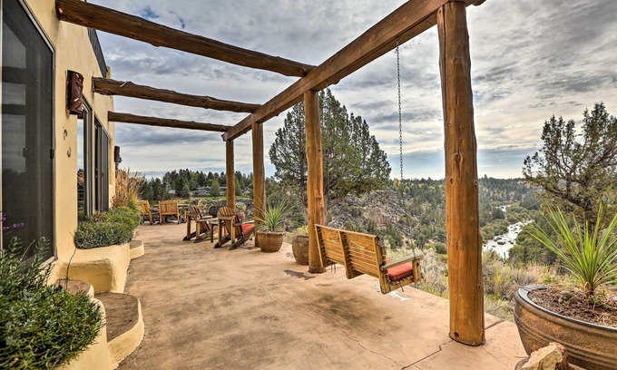 Immerse yourself in the beauty of the Bend area when you stay at this Southwestern gem! Sip morning coffee on one of the 2 patios, relish in the scenic views, then cast your line in the Deschutes River directly from this home. Surrounded by public land with access to hiking and mountain bike trails just outside your door! Secluded on 14 acres and surrounded by public land, this 3-bed, 2.5-bathroom vacation rental also offers easy access to Smith Rock State Park, Mt. Bachelor, and local breweries