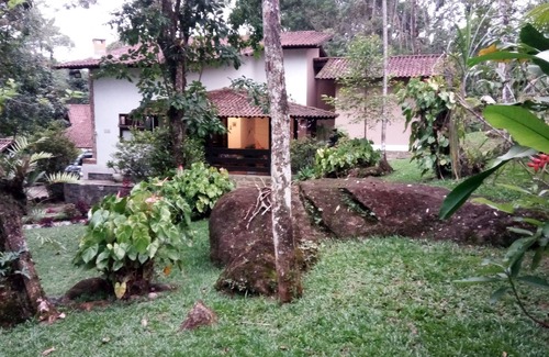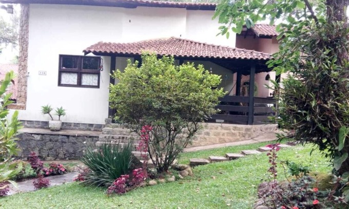 Family residence with a large living room with 2 bathrooms (toilet); TV room with sofa bed; balcony overlooking the garden; full kitchen with laundry area; 4 bedrooms, of which: 01 suite with whirlpool, double bed and winter garden; 01 suite with double bed, wardrobes and garden view; 01 large bedroom with double bed, wardrobe and garden view; 01 superior room with 4 single beds, one inlaid, wardrobes and a bathroom (toilet); large mezzanine and anteroom; garage for up to 04 cars, 02 covered spaces; garden, quiet cul-de-sac, very green, exotic birds and very close to the 3 Basins waterfalls, Poço das Esmeraldas and Cachoeira de Deus. With telephone and wifi. And home deliveries to restaurants and supermarkets. We offer matching Taxi Services to Resende Bus Station and Airports.