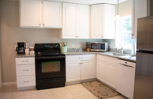 On a quiet street surrounded by mature trees, your spacious, newly renovated guest house awaits. Upgraded bathrooms including a curbless shower in the master bathroom and fully equipped kitchen with granite counters and new dishwasher are ready for you and your pets. The only thing missing is you. Please message with pictures and details about your pet, and welcome home.