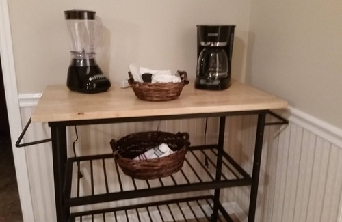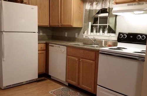 Enjoy all the amenities of home, with a washer and dryer, kitchen and outdoor grill in the large back yard. Dont forget the marshmallows for the fire pit! The kitchen has everything you need, coffeepot, microwave, blender, fridge/freezer with icemaker, dishwasher, dishes, pots and pans. One bedroom has a super comfy queen bed while the other bedroom has 2 twin beds. In the livingroom you can enjoy a large flat screen tv with streaming capabilities. The couch converts into a twin bed for more sleeping space. We also keep a self inflating queen air mattress tucked away in case you should have need. Stay connected with wifi.