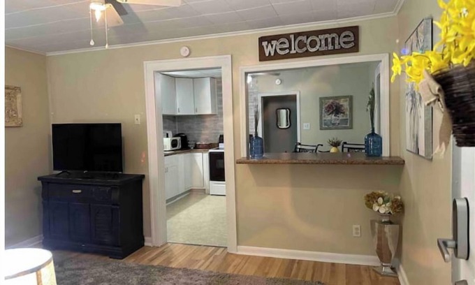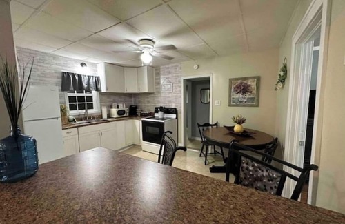 This 2 bedroom home has all your essential needs. 1 Queen bed bedroom and 1 Full bed bedroom and each is equipped with a 32” Roku TV. You will find a Full Bath and a laundry room that has a folding table. The kitchen has a table, serving bar with stools, Keurig Coffee maker, stove, and microwave! Enjoy your stay!