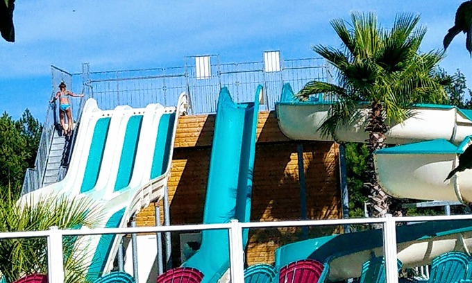 * on the park: the heated aquatic complex: 2 swimming pools, paddling pool, slides, splash zone for children and aquatower without forgetting the palm trees! Several swimming supervisors ensure the safety of the youngest and every day a group aquafun lesson