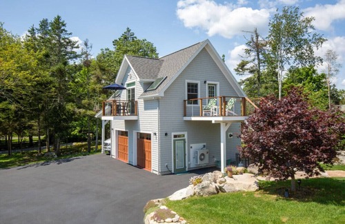 Nestled amidst the quaint charm of Boothbay Harbor, Maine, sits a picturesque house that exudes timeless elegance and modern comfort. Approaching the house, guests are greeted by a charming exterior adorned with natural rock accents and meticulously tended gardens, each bloom adding a splash of color against the rugged backdrop. Surrounded by lush greenery and gently swaying trees, this enchanting house offers a serene retreat for families seeking a blend of relaxation and sophistication. Stepping inside, the interior of the house boasts a seamless fusion of classic coastal charm and contemporary amenities. This above-garage studio loft features thoughtfully decorated with plush bedding and coastal-inspired décor, providing a peaceful haven for restful nights. The loft is fully equipped space with a deck offering views of the ocean. Outside, the woodsy backyard connects to a walking trail for those who enjoy outdoor exploration. Though nestled away from the bustling waterfront, this charming house offers easy access to all the attractions of Boothbay Harbor, with a quick 10-minute walk to Spruce Point Inn to enjoy lunch or dinner on the ocean. From exploring quaint shops and art galleries to embarking on scenic boat tours and outdoor adventures, there's something for everyone to enjoy just moments away. Whether seeking a peaceful retreat or an adventure-filled getaway, this beautiful house in Boothbay Harbor promises an unforgettable escape for families looking to create cherished memories amidst the beauty of Maine's coast.