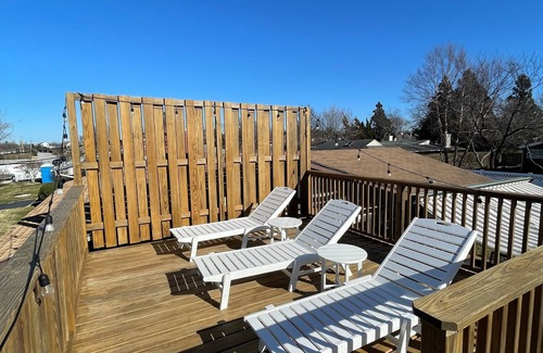 Montauk beach house, within walking distance to private beach, marinas & shops. Fenced in yard with three decks with outdoor shower. Can sleep up to 8. Great area for kids, bicycling and outdoor fun! Property includes two bikes, two sup boards, boogie boards and beach chairs for 8. retractable awning on main deck. Roof top deck and morning deck for coffee off the office. New minisplit airconditioning system. All decks are new with two new sliders with new outdoor shower