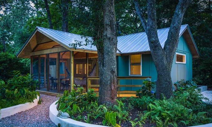 Beautiful cottage surrounded by lovely landscaping. Just a 10 minute drive to the beach and roughly 15 minutes to downtown Charleston. You will enjoy spending time in this 1 bedroom, 1 bath cottage right in the center of James Island. From the time you pull in the driveway, you will notice the attention to detail. Pack your bags for a trip to Charleston! The property is fully equipped with a full kitchen, washer/dryer, sheets, towels. In addition, there is toilet paper and paper towels. While staying at this property, you will enjoy the screened in patio with a dining table for 4. There are also two comfortable chairs for sipping your morning coffee on the porch. When you feel like going to the beach, don’t bother packing your beach chair as there are 2 chairs along with boogie boards and beach towels. When you come home from the beach, you may even want to use the outdoor shower! Very private shower and the back of the house. In the evenings, whether you want to go out or stay in, there are tons of restaurants close by. However, when you feel like staying in, there is a grill at the property and a perfect area outside great for cooking out and enjoying the exterior features of this home.