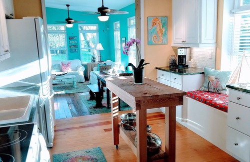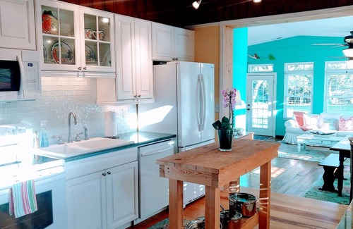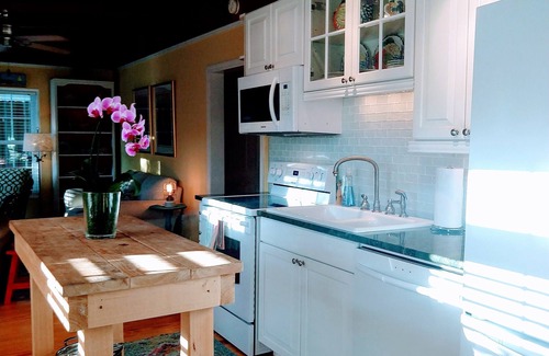 Our classic cottage has been recently renovated and cheerfully decorated. With 1212 square feet and an open floor plan, there is plenty of space for you to comfortably relax. There are two living/entertaining areas in the home, both centrally connected through the galley kitchen. Two bedrooms provide enough sleeping arrangements for 4 guests. The master bedroom offers a queen bed, television and private en-suite bathroom. The second bedroom offers two twin beds (one is a trundle with an extra memory foam topper). Two full bathrooms with walk-in showers. Linens are provided (sheets, towels/washcloths) along with shampoo and soap. A full-size washer and dryer is available just off the master bedroom.
