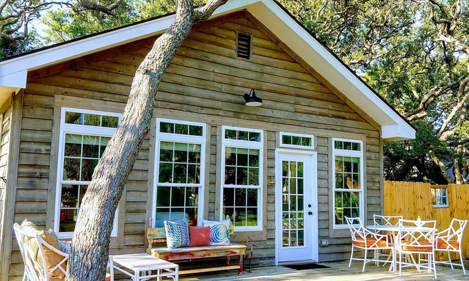 Our island cottage is perfectly placed under a canopy of magnificent live oaks, just steps away from the ocean. Nestled on a quiet beach access street, central to all the best attractions, shopping and eateries on Oak Island; close to nearby Southport. Public sidewalks along E Oak Island Drive make it easy to walk or bike to your favorite spots.