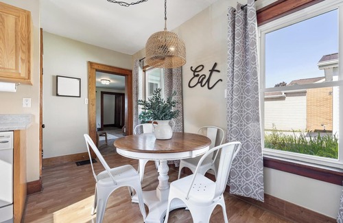 Welcome to The Uptown Cottage! This charming 2-bedroom, 1-bathroom home is nestled in the heart of Marion, Iowa, just a short stroll away from the vibrant Uptown area. Situated in a classic pedestrian-friendly neighborhood, this cozy retreat offers modern amenities including WiFi, TV, and a designated workspace. This is the ideal getaway for couples, families, or solo travelers seeking a peaceful retreat with convenient access to local attractions.