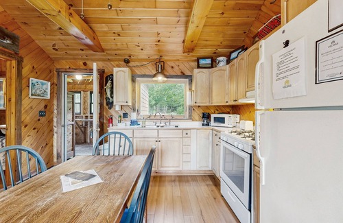 Perched on the bank of Moosehead Lake, this adorable cabin will have you slipping into vacation mode in no time with rustic vibes, serene surroundings, and room for a group of friends or family to spread out. Step inside and you will be greeted by the natural wood accents throughout and lake-themed decor that will allow everyone to get back to a simpler mindset away from it all. Start each day on a tasty note and hop into the full kitchen to whip up a tasty breakfast using the gas range, coffee maker, and all of the tools needed for any recipe. When you want to get a bit of fresh air, gather around the firepit, or launch a kayak from the shared dock mere steps away! Don't forget to venture out and experience the wonderful hiking trails and skiing nearby for year-round fun that the whole gang can enjoy!