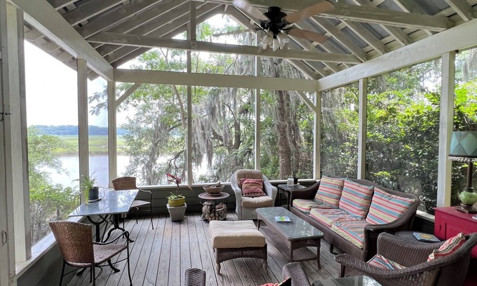 This amazing cottage is a former Girl Scout house built in the late 1800's in Summerville and moved to the property in 2003. A screened porch was added overlooking the Toogoodoo River !