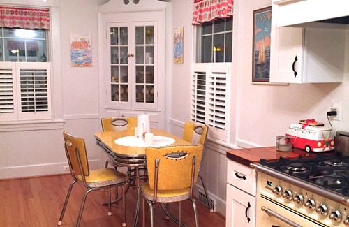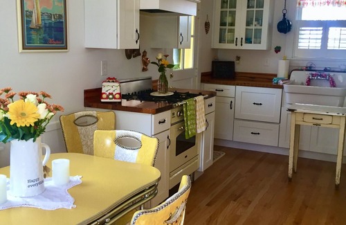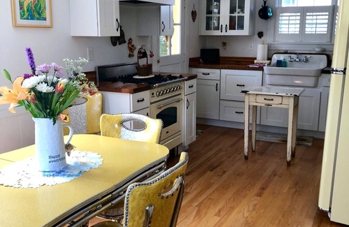- Charming Vintage Decor: Experience the cozy ambiance of this 1930's Cape Cod home, adorned with mid-century style decor that elevates the romantic feel for your wedding stay.
