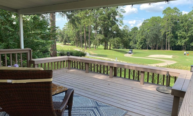 This Tallahassee house boasts 2 inviting bedrooms with 2 queen beds. Guests can relax in the peaceful atmosphere and enjoy the beautiful golf course views from the deck. With amenities like a full kitchen, washer/dryer, hair dryer, heating, and AC, your stay will be comfortable and stress-free. Take a soak in the bathtub in one of the 2 full bathrooms provided. Fall in love with the charm of this wonderful golf course retreat and create unforgettable memories during your stay. This house is conveniently located 5 miles from FSU's Doak Campbell Stadium, 4 miles from FAMU's Bragg Memorial Stadium, 3.8 miles from the State Capitol Building, and 2 miles from Governor's Square Mall.