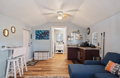 Relax & unwind in The Agave Suite, located in a peaceful lake town. This will be your “shome” away from home. Upon entry of the the property you will find a private entrance, covered parking, pool access and mature trees. Your guesthouse comes equipped with a cozy queen size bed, pull out sofa, walk-in shower, kitchenette, television, wifi and more. Looking to explore? We are centrally located to your nearest parks & Florida attractions.