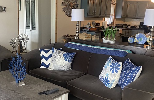 Full of amenities this 3 Bedroom, 3 Bath home with two separate living areas has plenty of room for up to 10 guests if using our QUEEN size sofa bed and available cot. Smart TVs in every bedroom, living area and family room. Xfinity cable and fast WiFi. Open concept kitchen has everything you need to prepare and serve meals in style, we even provide insulated cups to keep your beverages cold! Island can accommodate six with an adjoining table seating another three and TV trays also available. Comfy bedding with fresh linens, bath towels and beach towels are provided. Washer and dryer available including Tide Pods, Bounce and Bleach.