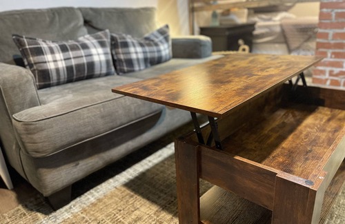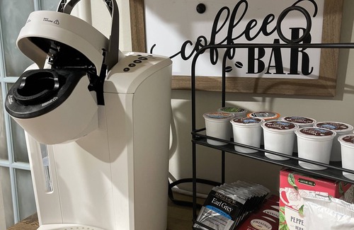 Lots of extras; cool k-coffee station, cold bottled water, snacks, and brand new 40” smart LED Roku TV. For safety/security of our family, guests and property, we have a blink doorbell/camera at OUR front door only as well as 4 outdoor blink cameras. 1 is @front of our house, 1 is down the driveway(in tree), 1 is also a flood light by trash can area, 1 on side house facing woods/our personal firepit.