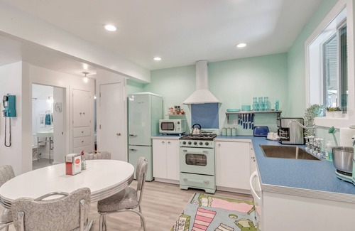 Come and experience a stay in this newly remodeled 1950's retro themed home with your own private hot tub that will leave you feeling nostalgic! Located in a quiet residential neighborhood in the heart of Millcreek. Near restaurants, bars, grocery stores, shopping stores and Sugarhouse Park. 15 minute drive to Downtown and 30 minute drive to 4 ski resorts! Feel at home with the 2 bed - 1 King + 1 Queen, 1 bath and modern amenities like fast WiFi, Prime Video and Netflix apps on the TV's