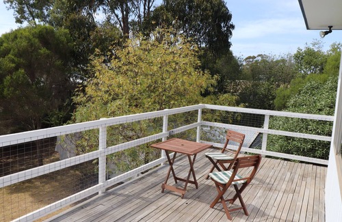 CUP WEEKEND AVAILABLE last minute! Enjoy our beautiful family and pet friendly holiday home a short walk to stunning beaches & rolling countryside. It is a tranquil, comfortable & fully equipped haven with heating throughout & a new reverse cycle air-conditioner and unlimited free wifi. Spacious, tranquil and fenced dog friendly garden. Linen (sheets and towels) provided. The upstairs is nestled among the treetops with sea glimpses. Swimming beach and dog walking beach are a short stroll away at the bottom of our street as are fantastic sunsets. The famous penguin parade is close by.