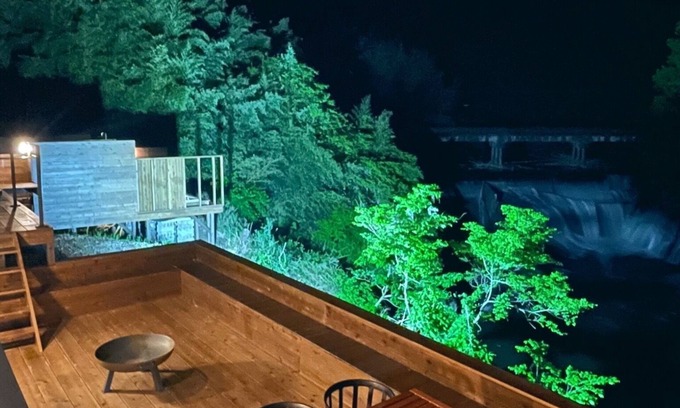 Enjoy the best time in the natural mineral spring openair bath and SAUNA in front of the spectacular waterfall