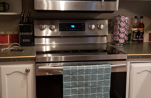 The kitchen features everything you need to make a gourmet meal or just an easy snack with convection oven, microwave and refrigerator as well as coffee maker and Keurig to get(and keep) you going all day! Refrigerator has ice maker and filtered water. There's also a guest laundry with washer and dryer available as well as a two car garage available for your use.