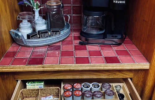 The kitchen is stocked with modern appliances such as full stove and oven, microwave, drip or Keurig coffee maker, crock pot, toaster, waffle maker, rice cooker and plenty of pots and pans to prepare your favorite foods.