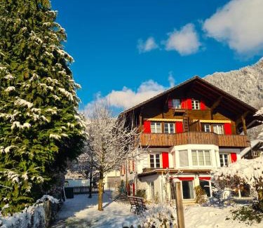 This 10 Bedrooms Bed & Breakfast is suitable for tourists and travelers. It has several amenities that would guarantee your comfort. These amenities include: Guest Services, Child Friendly, Laundry, and several others. This is a 3 star rated property and has over 1259 reviews with the average score of 8.8 . Coming to Interlaken and needing a place to stay? Be it for work or for leisure, consider staying at this Bed & Breakfast for your next visit, you will surely love it.