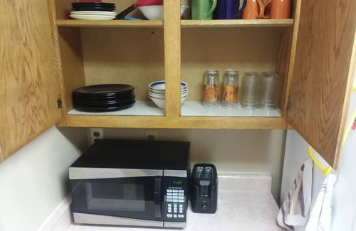 Cookware provided. Futon/couch can fold out, as spare beds. Fireplace. Central A/C.