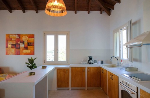 Only 4km from the beach, a fully equipped holiday home in Samos. It features a delightful veranda with an endless sea view, perfect for savoring coffee and cool drinks, making it ideal for your summer getaway.