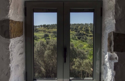 Surrounded by endless rows of silver-green olives trees, Afentiko Pigadi’s four independent villas are located on a serene hillside overlooking the Ionian sea. Made from local stone sourced in near-by areas and with great respect to the unique Peloponnesian landscape, the villas are designed as a natural continuation of their surroundings. The famous perennial olive groves, mix with Afentiko Pigadi’s herb garden. The smell of lavender, thyme and oregano surround the visitor, and the eye travels from the small bunches of orange and lemon trees down to the crystal clear blue of the sea and Methoni’s little islands – Sapienza, Agia Marina, and Schiza.