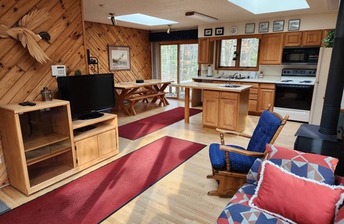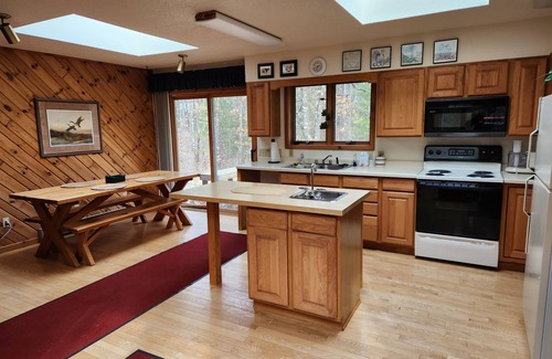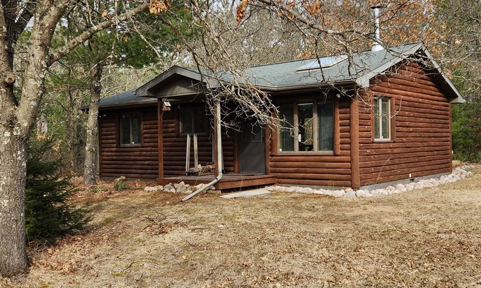 Cabin located in a remote location just minutes from the Chain 0' Lakes and downtown Waupaca. Looking for access to all the fun without the cost and chaos? Then this is for you. Surrounded by 120 acres of private property available for hiking with permission and a five minute trek to the Ice Age Trail and Hartman Creek State Park make this is a great getaway for those seeking some relaxation while still enjoying all the amenities that the Waupaca and Amherst areas have to offer. Well-equipped kitchen and standard refrigerator and freezer make meals a breeze with dining opportunities both inside as well as the private deck. Low cost makes renting a pontoon, kayaks, or jet skis more affordable on the Chain. TV is equipped with a Chromecast and requires use of a casting device (phone, tablet, etc.) to be used. Wi-fi also on premise. Please be aware there is no air conditioning. Ceiling has sky lights that tend to heat cabin up. Each room has a ceiling fan and there are portable fans as well.
