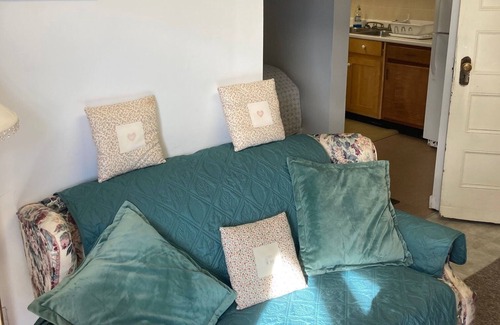 1 full bedroom with queen bed plus one twin bed. Enjoy included wifi, DirectTV, appliances, microwave etc. One block away from new laundromat.
