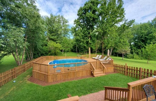 Situated on over 4 acres of land with fire pit, horseshoes, above ground pool, ping pong table and bocci ball set. A grill, private screened porch and 2 open sun decks will complete your getaway.