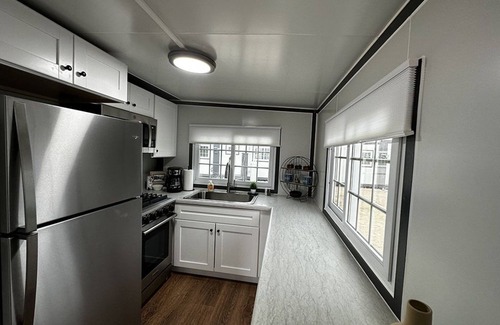 These BoxHouses are a haven that seamlessly blend privacy and comfort. In staying here you can experience the culinary delights of a fully equipped kitchen, unwind in a stylish living area designed for relaxation, rejuvenate in your private bathroom, and retreat to secluded sleeping quarters or opt for the practical yet comfortable full-size sofa bed. Enjoy added conveniences such as a personal washer and dryer, modern appliances, free WiFi, and instant-hot water. Park effortlessly right in front of your BoxHouse too.