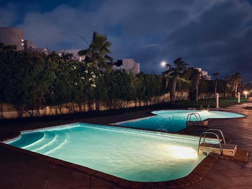 Aghadir Village قرية اغادير offers accommodations in El Alamein, 14 miles from Porto Marina. This apartment features air-conditioned accommodations with a balcony and free Wifi. The spacious apartment is composed of 3 bedrooms, a living room, a fully equipped kitchen, and 2 bathrooms. A flat-screen TV is available. The property offers garden views. The apartment conveniently has both an outdoor pool and a private beach area. Borg El Arab International Airport is 43 miles from the property.