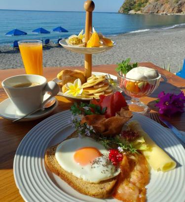 Located in Agia Roumeli, a few steps from Agia Roumeli Beach, Agia Roumeli Hotel adults only provides accommodations with a garden, free private parking, a private beach area and a shared lounge. Featuring a terrace, the 2-star hotel has air-conditioned rooms with free WiFi, each with a private bathroom. Guests can use a bar. Guest rooms are equipped with a flat-screen TV with satellite channels, fridge, an electric tea pot, a shower, free toiletries and a desk. The hotel has certain units with sea views, and every room is equipped with a balcony. All rooms include a closet. At Agia Roumeli Hotel adults only you'll find a restaurant serving Greek, Mediterranean and International cuisine. Vegetarian, vegan and gluten-free options can also be requested. Guests at the accommodation will be able to enjoy activities in and around Agia Roumeli, like cycling. Chania International Airport is 55 miles away.