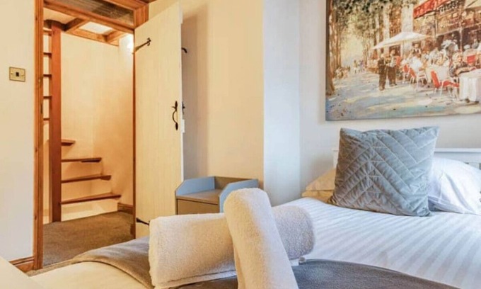 Agniti Cottage boasts modern amenities while preserving its historic charm, making it the ideal retreat for you and your loved ones. The open-plan kitchen is fully equipped, featuring a delightful breakfast bar and a warming log burner effect fire to create a cozy ambiance. You'll find two comfortable bedrooms accessible via steep spiral staircases, adding to the unique character of the cottage. Guests can unwind in the small garden area or the captivating courtyard, which offers serene views of the river—perfect for romantic moments before or after your wedding festivities.