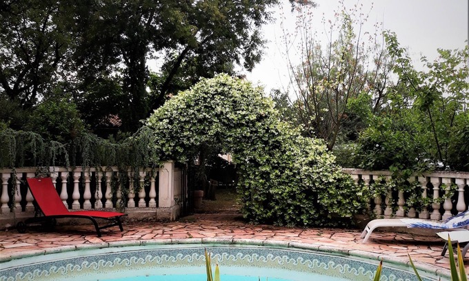 - Agréable Studio Dans Jardin Paysager Avec Piscine et Grande Cuisine D'été
