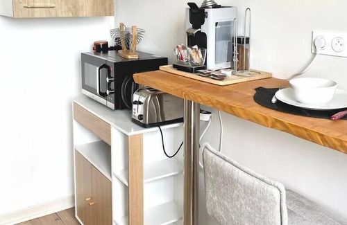 Vous disposerez d'une cuisine entièrement aménagée et équipée, idéale pour préparer de bons petits plats, comme à la maison. (four, plaques, Senseo Philips, grille-pain, bouilloire, vaisselle, mixeur, presse-agrumes, etc.)