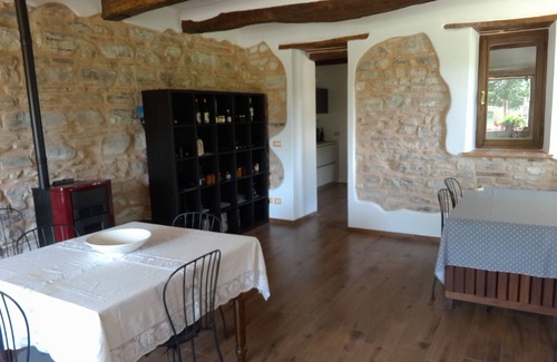 Located in Arcevia, near the Frasassi Caves and the San Vittore Spa, nestled in a tiny mountain valley within the "Gola della Rossa and Frasassi" Natural Park, the Bosimano Farmhouse offers two recently renovated apartments, "LA MANGIATOIA" max 6 people and "IL FIENILE" max 4 people. The building is in bare stone, the internal structures are in wood. Recently furnished with a touch of modernity. The apartments are complete with fully equipped kitchen with dishwasher (La Mangiatoia) air conditioning, fan, hifi system, flat screen TV, free wifi, bathroom. You can eat outside on the large terrace or in the large garden, there is a large barbecue also available for private parties with friends who will come to visit you. There is a small vegetable garden where you can freely harvest the fruit. It is available (by prior arrangement) free of charge, an umbrella and two sun loungers at the "Maremio" baths nr. 50 near the Rotonda sul Mare of Senigallia