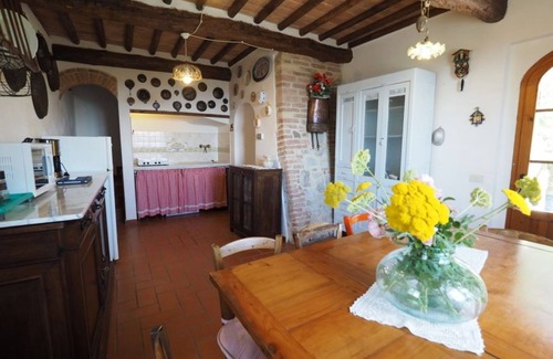 It is located in the center of a triangle whose vertices are Volterra, San Gimignano and Colle Val d'Elsa. Hospitality is offered in 4 completely restored and independent 16th century farmhouses, tastefully furnished by the owners with beautiful antique furniture, they have all the comforts and heating and equipped kitchens, the bedrooms are all with private bathroom.