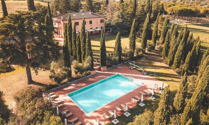 Featuring mountain views, Agriturismo Terra Di Dio Toscanizzazione in Capannoli offers accommodations, pool with a view, a garden, a bar, and a shared lounge. The air-conditioned accommodations are 22 miles from Piazza dei Miracoli. There's free private parking, and the property features a paid airport shuttle service. At the farm stay, every unit is fitted with a desk. Every room is fitted with a kettle, a private bathroom, and free Wifi, while certain rooms have a terrace and some have pool views. Additional in-room amenities include wine or champagne, fruit, and chocolates or cookies. Buffet and Italian breakfast options with warm dishes, local specialities, and fresh pastries are available. Guests are welcome to eat at the on-site restaurant, which is open for dinner, lunch, and brunch. Sightseeing tours are available within easy reach. The farm stay has a picnic area where you can spend the day outdoors. Pisa Cathedral is 22 miles from the farm stay, while Leaning Tower of Pisa is 22 miles from the property. Pisa International Airport is 20 miles away.