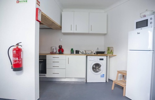 A living room, a dining area, and air conditioning are featured at this 2-bedroom, 1-bathroom rental. Bathroom amenities include a hair dryer, towels, and toilet paper. The kitchen is equipped with an oven, a stovetop, and a refrigerator, as well as a coffee maker, an electric kettle, and a microwave. And because there's access to laundry facilities, you can go a bit lighter on your packing.
