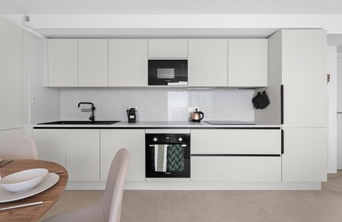- A fully-equipped kitchen including electric kettle, oven, microwave, toaster, dishwasher, hob...