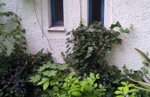 The house wall blooms in May. In our private villa we rent 2 rooms with our own shower and toilet and small simple kitchen in our absence. They are nice big rooms with double beds / sofa bed. Everything you need is in the house. In front of the front door there is a small rock garden with a parasol and a bench to relax.