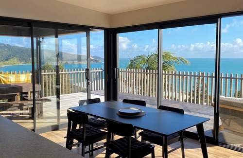 Architecturally designed modern home with views of the Tasman sea from every window. Enjoy a calm, relaxing holiday in this stylish space.