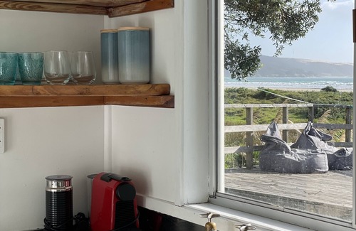 A super cute Kiwiana Bach set between Pohutukawa trees with a magnificent ocean view.
