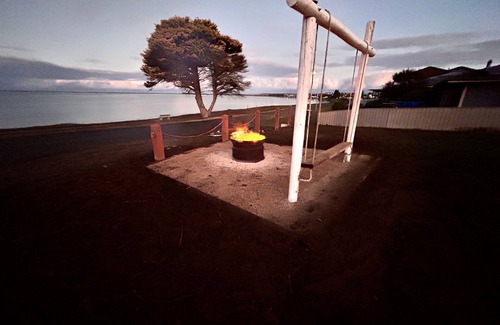 The beachfront deck is not only great for soaking up the sun but also equipped with a BBQ for delightful outdoor dining. After a successful day of fishing, make use of the convenient fish cleaning station down the side of the house to prepare your catch for a delicious meal. Whether you're a seasoned angler or a first-time fisher Ahoy Point Turton encourages you to make the most of your beachfront location. The property has a fire pit out the front with a Suspended seat for those winter nights.