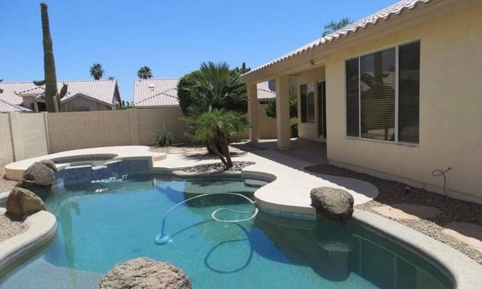 Ahwatukee Veteran owned 4bed 2bath Dog Friendly home with heated pool and spa is located in Mountain Park Ranch. Ahwatukee Veteran owned 4bed 2bath Dog Friendly home with heated pool and spa provides accommodation, featuring Wellness Facilities, Pet Friendly, Sports/Activities, among other amenities. This House features Wellness Facilities, Pet Friendly, Sports/Activities, to make your stay a comfortable one.